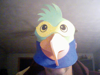 Well, Handsome was singing along with whatever it was. And dancing, something you almost never see him doing in public. Maybe he was all happy and confident about dancing because he was in disguise. You see, he'd grabbed one of the 1$ hats off the shelf and had pulled it down so far over his face it was acting as a mask, though he couldn't see out of it. Singing and dancing to the be-boppy beat, in the middle of the store, was this: